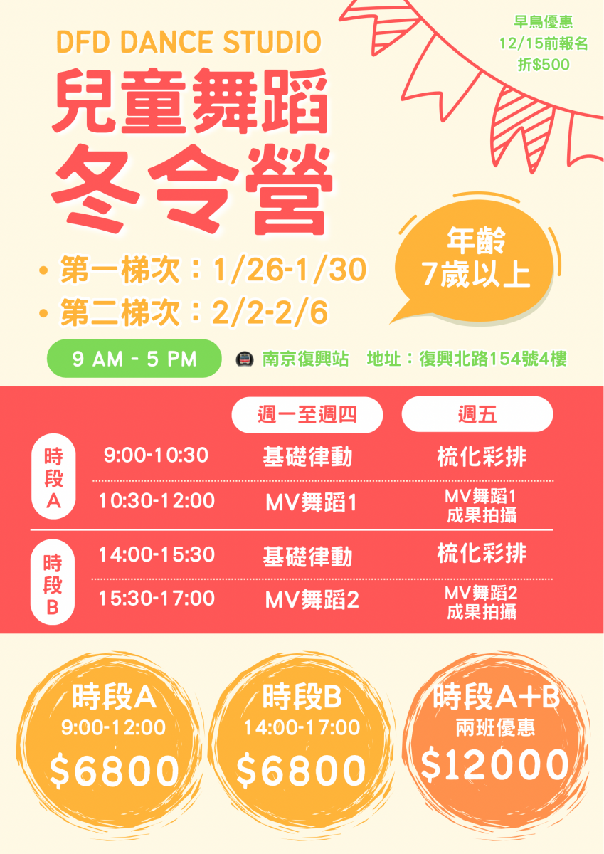 早鳥優惠:12/15前報名折$500